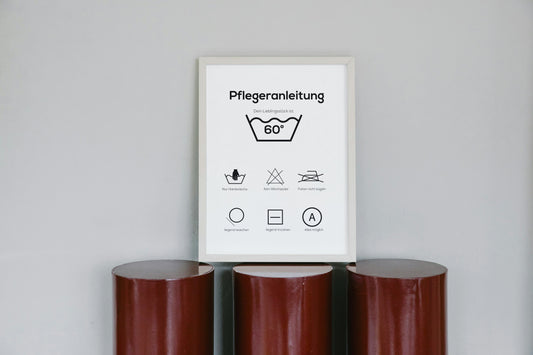 Lustiges Poster für Geburtstag oder Jahrestag – mit Pflegeranleitung und Waschsymbolen