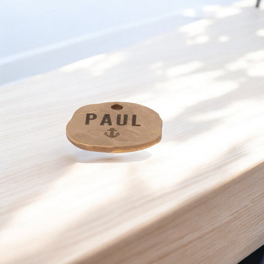 PFOTENMARKE - Messing Hundemarke in Stoßoptik – ca. 25 mm Durchmesser